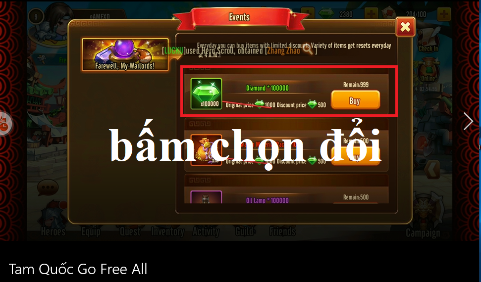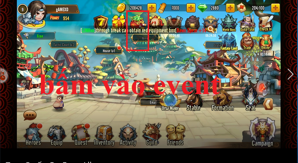 Bước 2 : Về Thành Chính Bấm Vào Event :